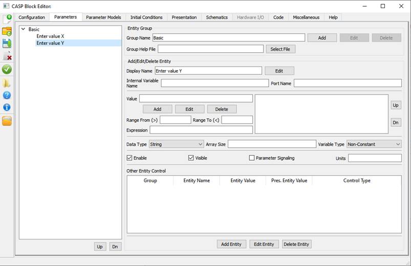 Block parameters are used to alter the behavior of the block instances during modeling. Block parameters are termed as entities. Each entity is a combination of parameter field and value. Entities are grouped into entity group.