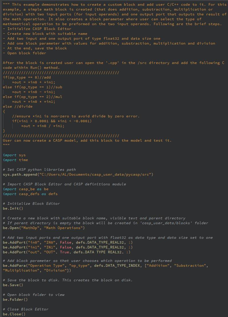 Step 3: Start writing Python script using CASP Python Libraries. Refer below self explanatory example on how to create a CASP block in Python