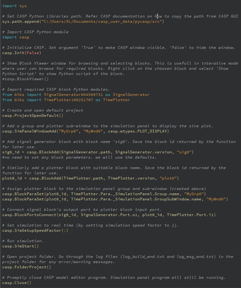 Step 2: Create a new Python script file or open an existing one in any directory of your choice. Add CASP Python Libraries installation path at the top of your Python script file (if required). The details on how to add the path in your script is given here.