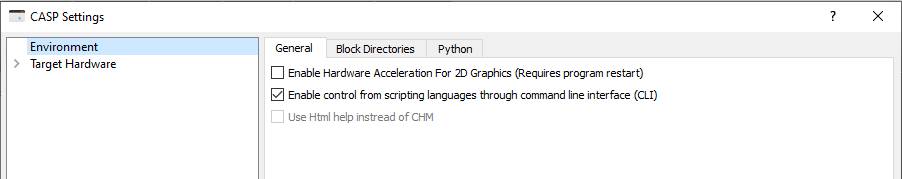 Check this option to control CASP from other applications such as Python through command line interface. This option is enabled by default. |