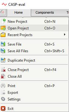 A dialog box appears where user can browse to project location and select CASP project file (.prj). After project is opened, it is displayed in CASP left window