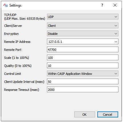 Within CASP Application Window: Limits the control to within the CASP application window (either it is a simulation panel window or a RTViewer server window). This option does not require admin privileges. However, the control functions are limited. Full Screen: When this option is enable full screen control including other applications. This option requires admin privileges. This option is only applicable on client. This option can be changed during runtime. |