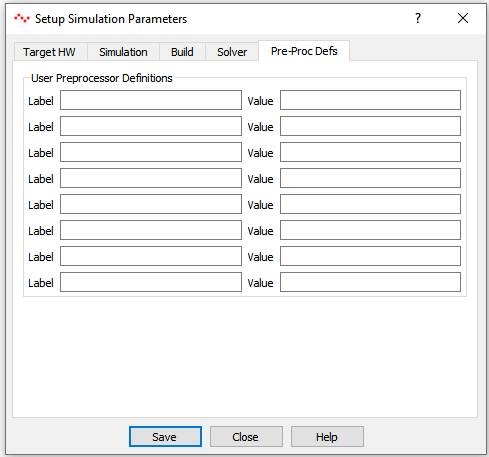 User can add pre-processor definitions in these fields. These are reflected in global header file as - #define <label> <value> pair |